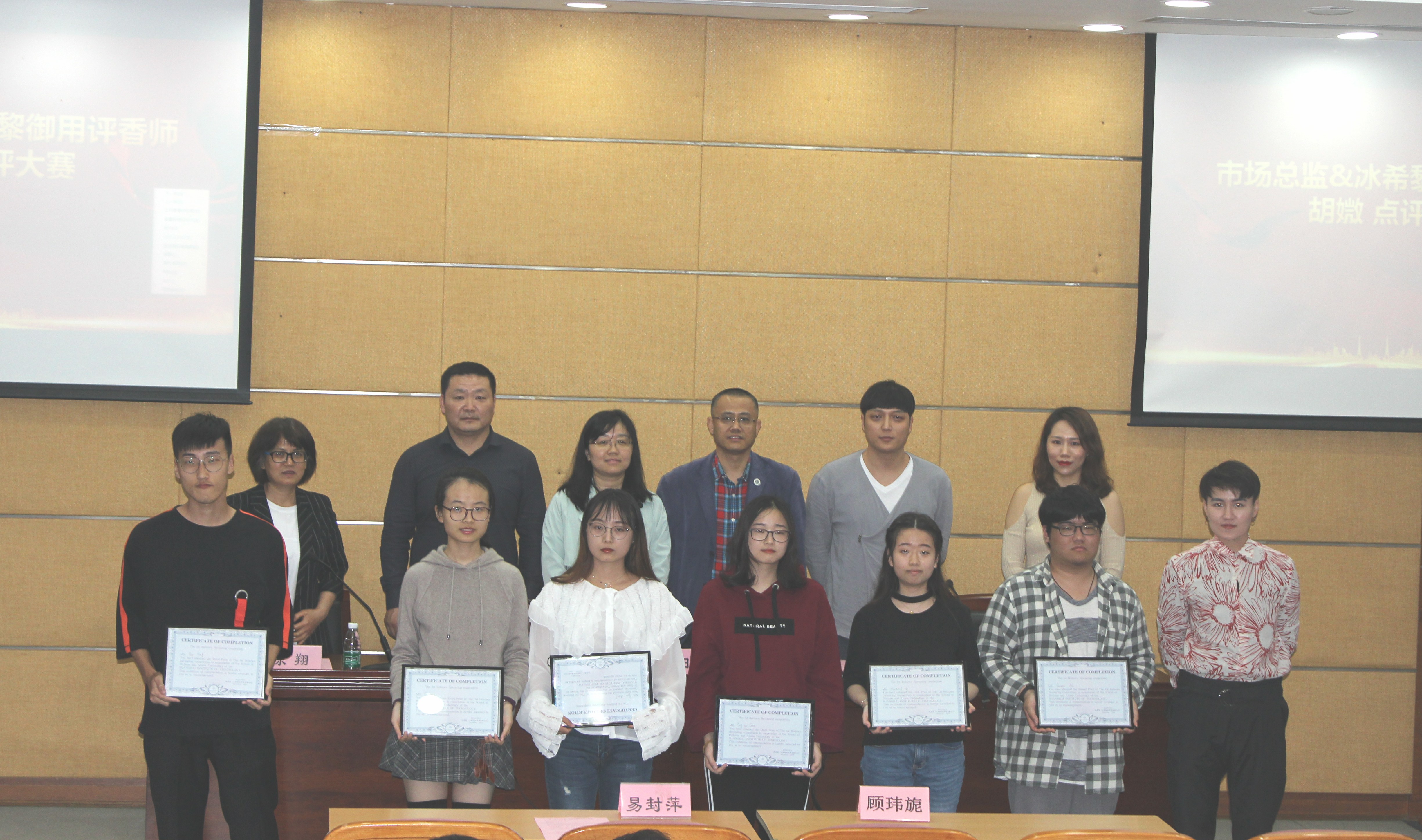 会上胡媺女士详细介绍本次调香竞赛评选过程并对竞赛结果进行专业点评。与会嘉宾向获奖同学颁发奖状,获奖学生代表与在座同学分享参与竞赛与专业技能锻炼方面的收获与体会。王化田在总结中激励同学们加强专业知识的学习,打牢基础,借助于校企合作平台锻炼实际动手能力,提升专业技能,勇于创新创意,丰富专业技能学习的形式。